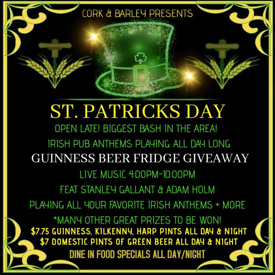 OPEN LATE! BIGGEST BASH IN THE AREA! IRISH PUB ANTHEMS PLAYING. ALL DAY LONG